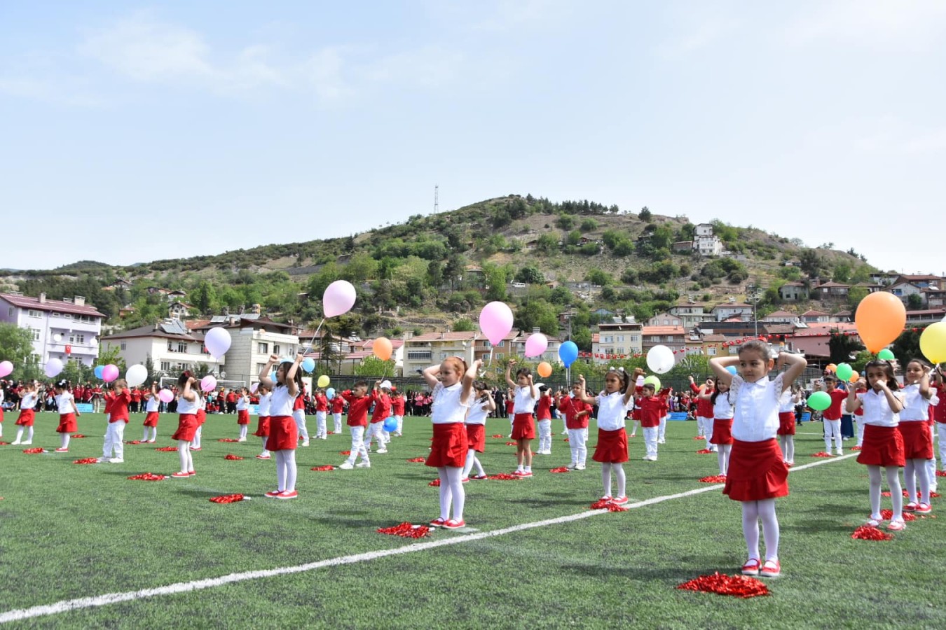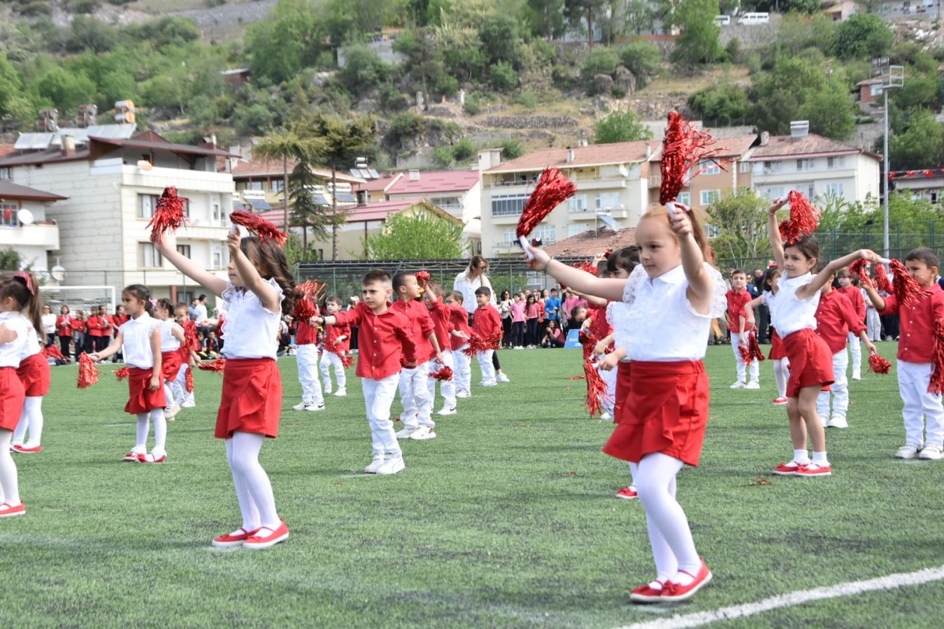 Kutlama programının gösteriler kısmında; anasınıfı öğrencilerinden, orta okul öğrencilerine kadar 23 Nisan’a özel hazırlanan; dans gösterileri gerçekleştirildi. Program tören geçişinin ardından sona erdi.