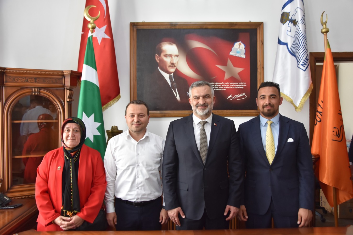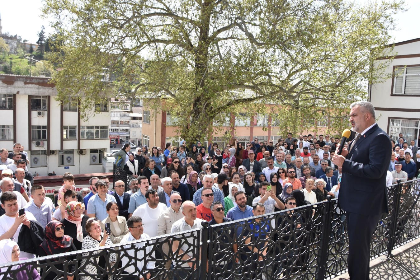 Niksar Adliyesinde mazbatasını alan Niksar Belediye Başkanı Semih Tepebaşı, Niksar Belediye binası önünde düzenlenen törende konuşma yaptı.