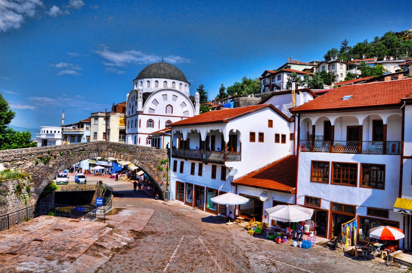 Yılanlı Köprü de denilen Leylekli Köprü; Niksar Kalesi'nin güneyinde, şehrin içinden geçen Çanakçı Deresi üzerinde, Arasta Camisinin yakınındadır. Adını, kemer kilit taşı üzerindeki ağzında yılan tutan leylek figürü kabartmasından alan köprünün kesin inşa tarihi bilinmemektedir. Kabul edilen görüş; Roma döneminde inşa edildiği, Türk döneminde de onarılarak kullanıldığı şeklindedir. Yuvarlak tek kemer gözlü köprü, 20 m. uzunluğunda ve 3,5 m. genişliğindedir. Yürüme zeminin iki yanında, orta noktadan uçlara doğru gidildikçe alçalan korkuluklar yer alır. 1960 yılında belediye, köprü korkulukları üzerine demir parmaklıklar takmıştır. Kemer kavsi düzgün kesme taş, diğer kısımları moloz taşla inşa edilmiştir. Köprüye adını veren alçak kabartma tekniği ile yapılmış ağzında yılan tutan leylek tasfiri açık renkli küfeki taşı üzerine işlenmiştir. Taşın cinsinin ve formunun diğer taşlardan farklı oluşu; bu tasfirli taşın daha sonradan, olasılıkla Türk döneminde buraya konmuş olabileceğini düşündürmektedir (Çal,1989; Gündoğdu,2004).